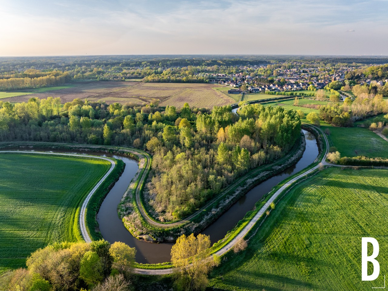 Gedetailleerd beeld van de rivierbochten in de avond.
