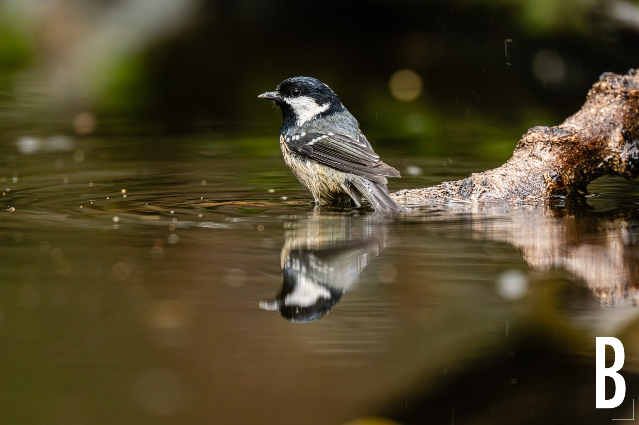 Badende zwarte mees