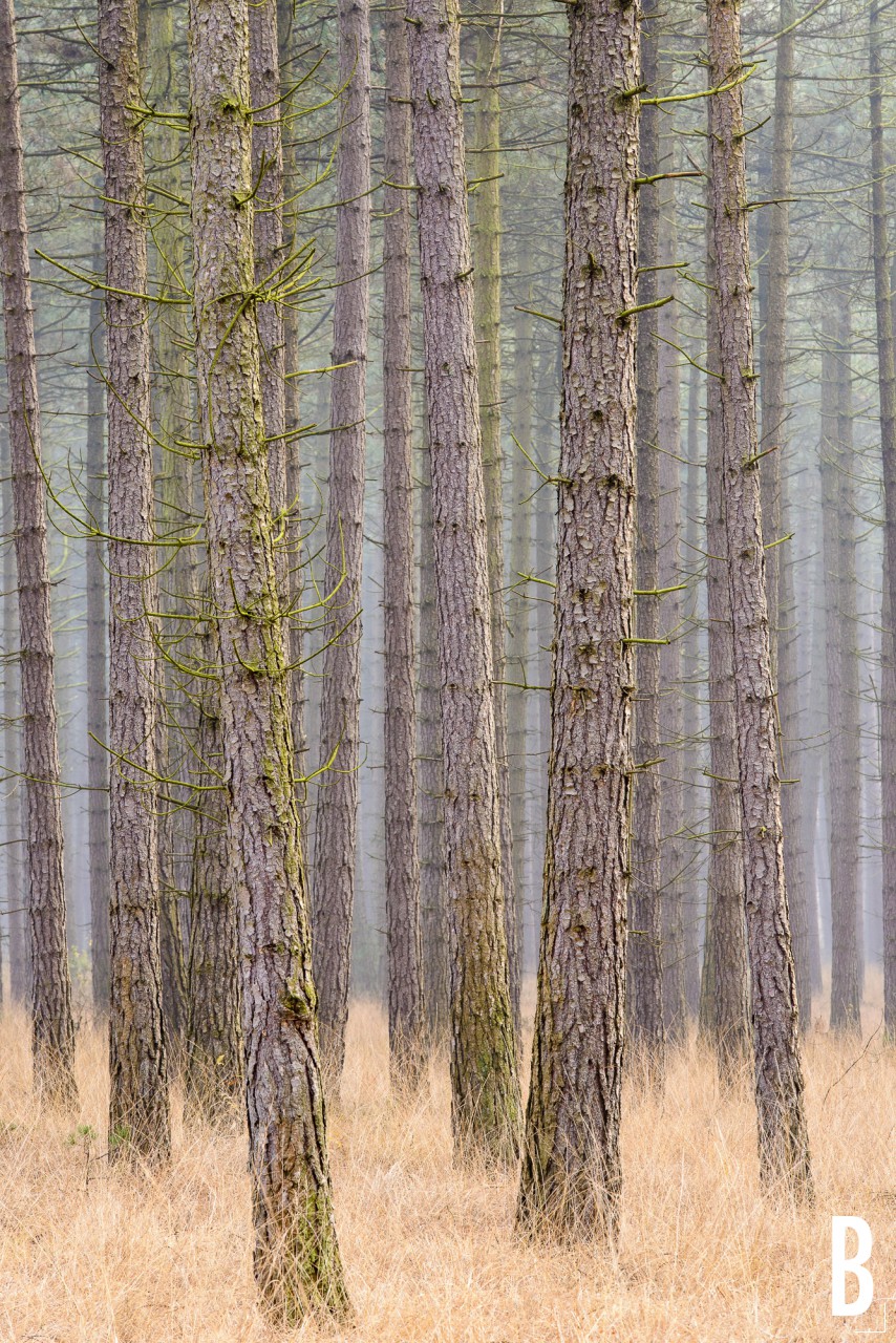 Stammen in sparrenbos - Tree trunks in spruce forest