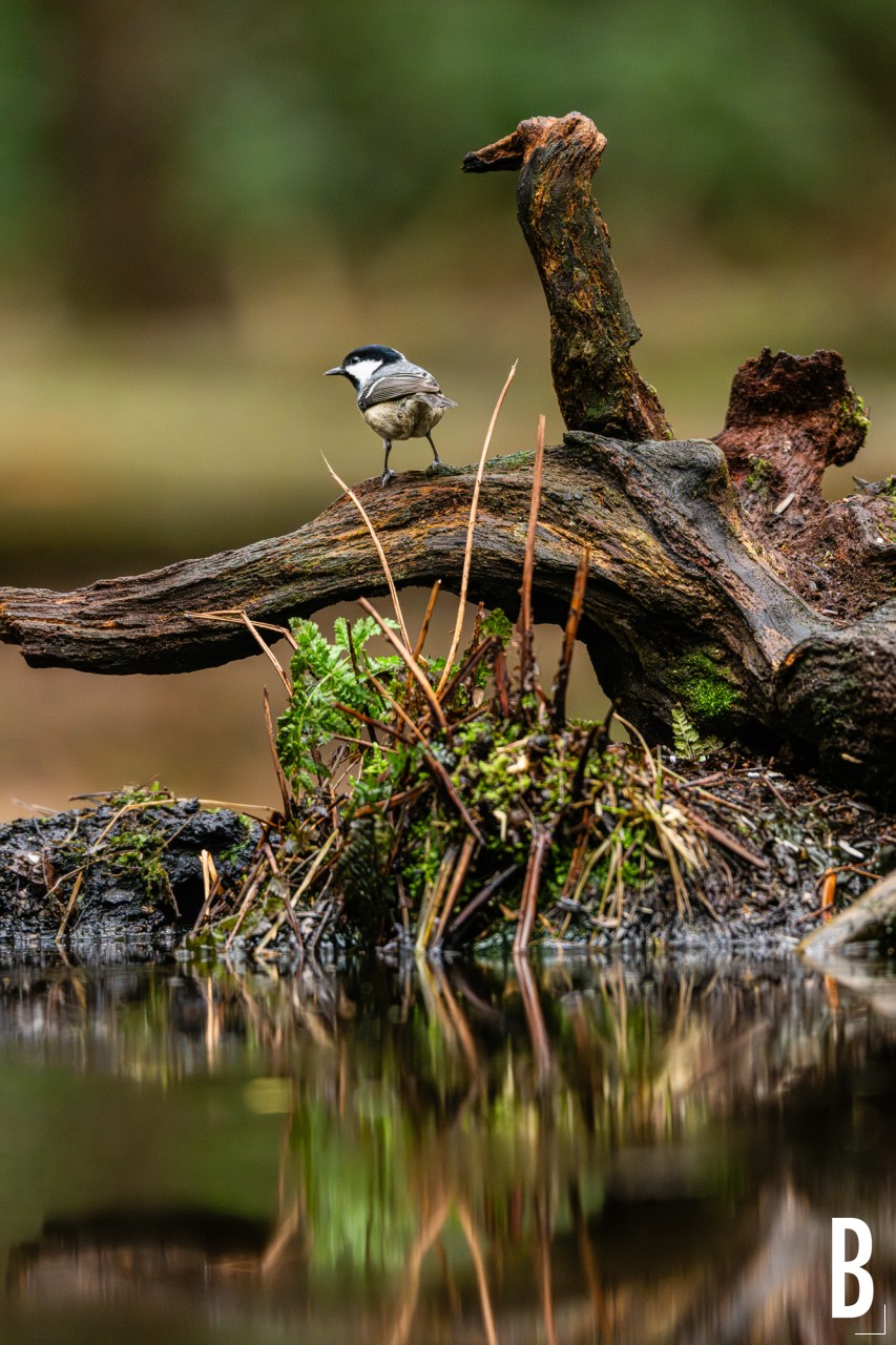 Zicht op een zwarte mees (Periparus ater) in de omgeving van Putte.