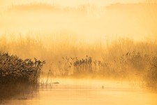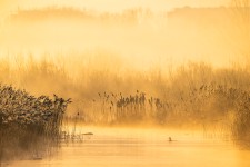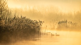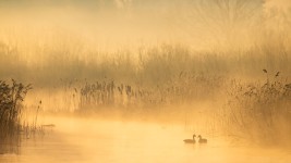 Watervogels in de mist