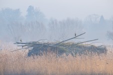 Aalscholver in de mist