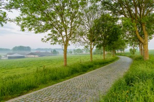 Reflecties van populieren in het voorjaar in een visvijver in de Scheldemeersen van Eke.
