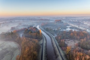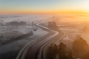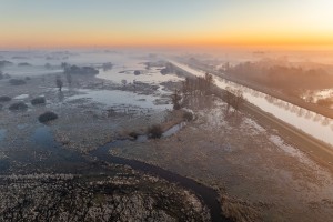Natuurreservaat Viersels Gebroekt in de vallei van de Kleine Nete op een mistige, winterse ochtend.