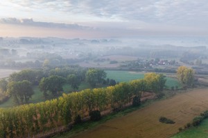 Verstild winterbeeld van knotwilgen langs de Zwalmbeek in Munkzwalm tijdens het ochtendgloren.