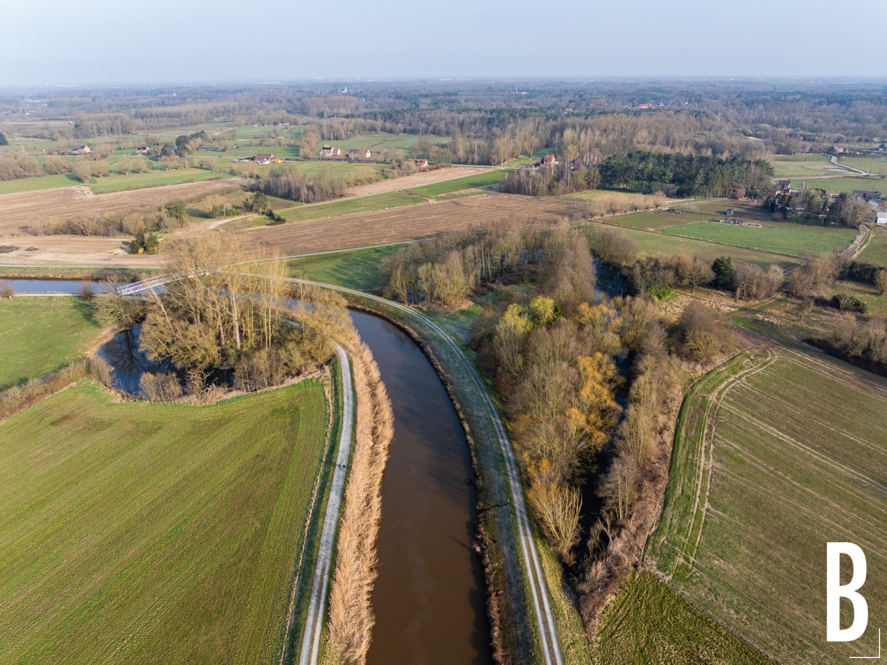 Dronefoto van de kronkelende rivier de dijle tijdens de winter in de omgeving van hever.