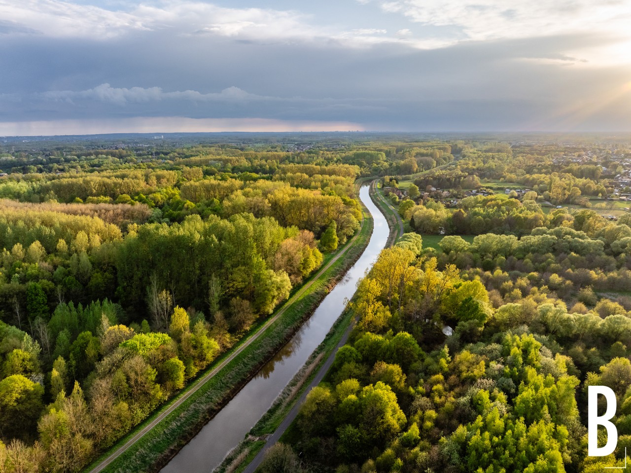 HDR-luchtfoto van de riviervallei in de avondzon.