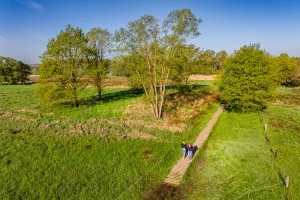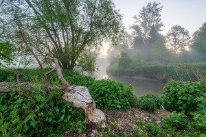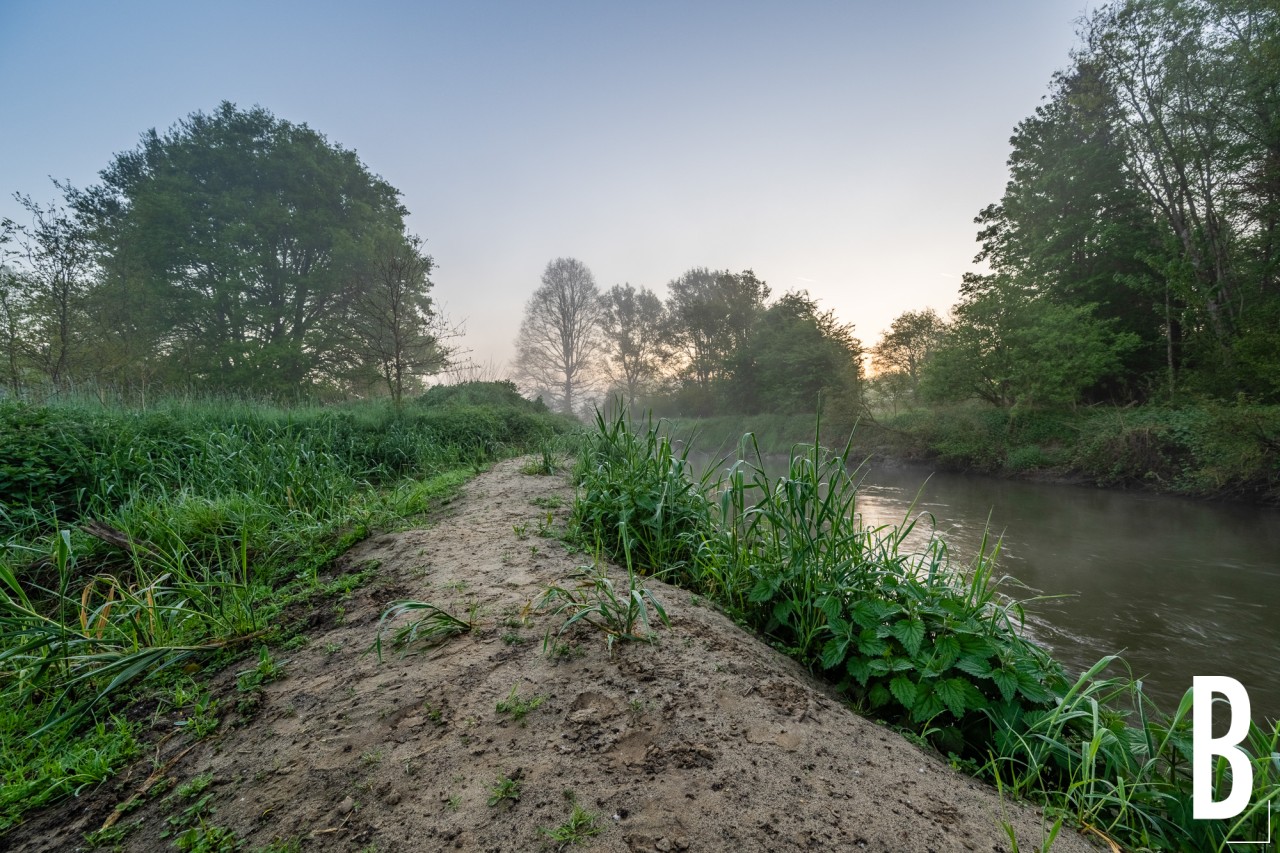 Weids zicht op de mistige vallei van de Doode Bemde.