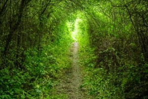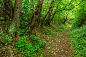 Een idyllisch pad dat wandelaars door het natuurgebied van Natuurpunt leidt.