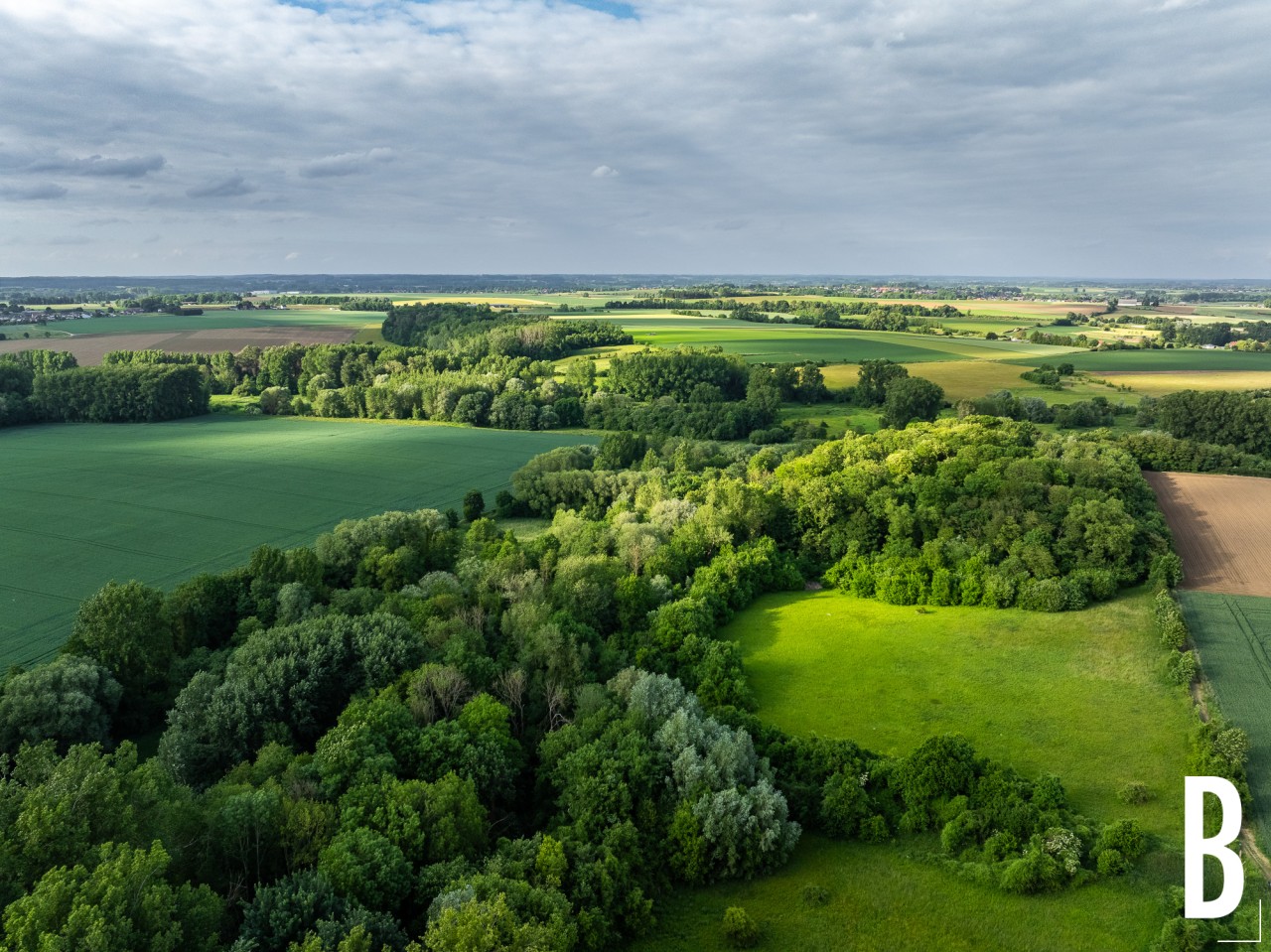 Zicht op de meanderende waterloop en het moerasgebied vanuit de lucht.