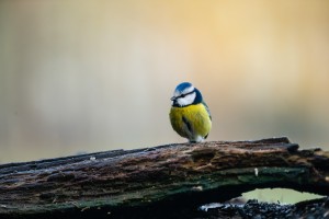 Een pimpelmees (Cyanistes caeruleus) rustend op een takje in de winter.