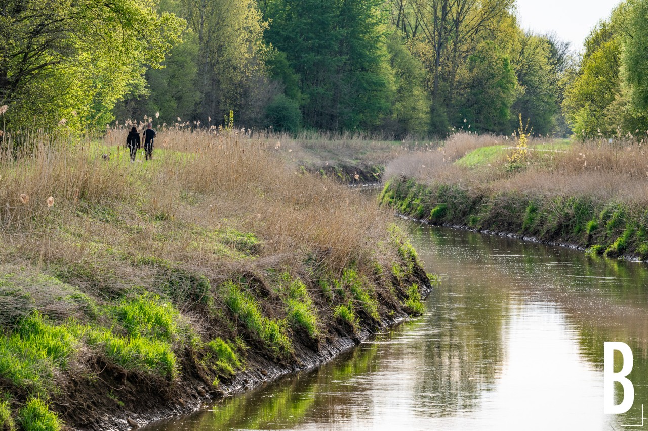 Zicht op de velden in de Demervallei bij het vallen van de avond.