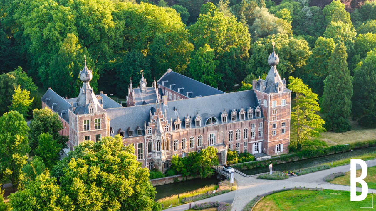 Spectaculaire drone-opname van het kasteel en de omringende tuinen.
