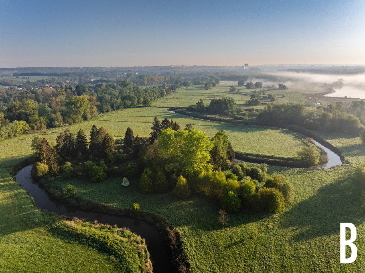 Kleurrijke luchtfoto van de opkomende zon boven de mist.