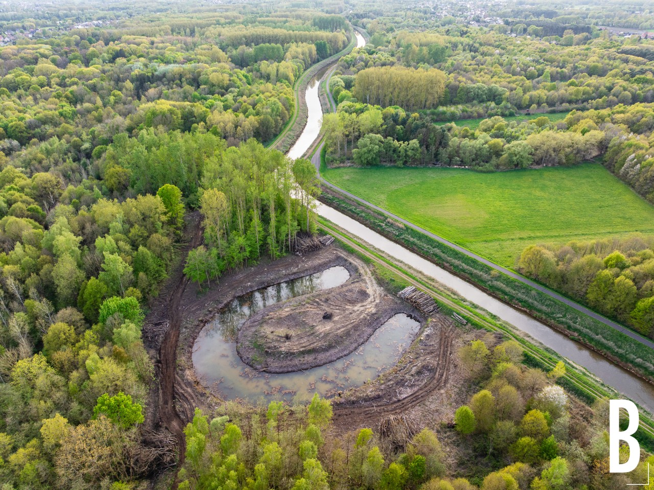 Dronebeeld van de hermeandering nabij Rotselaar.
