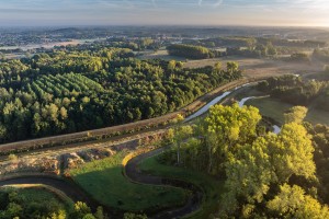 Karakteristiek landschap met knotwilgen langs de rivier.