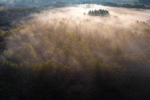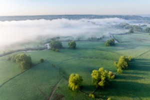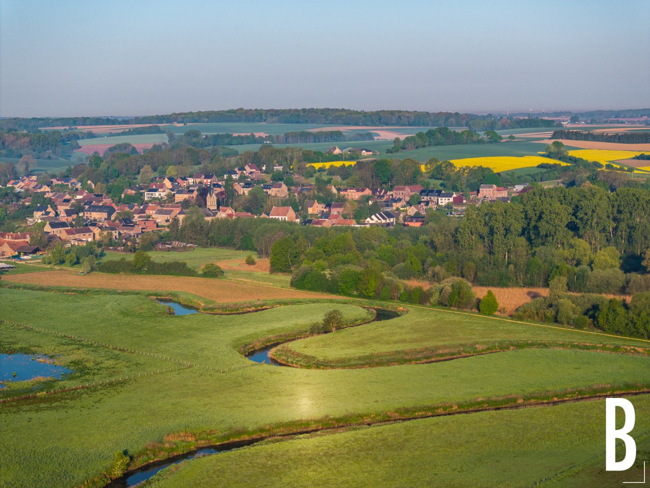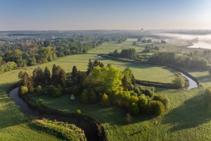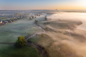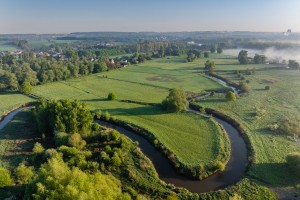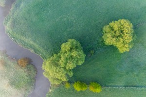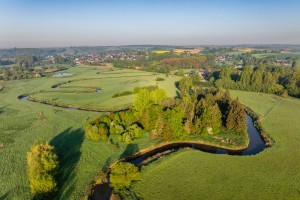 Dronebeeld van de drassige gronden langs de Dijle.