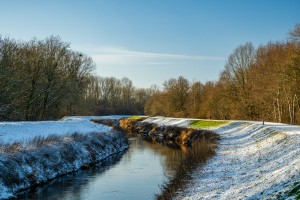 De kronkels van de Demer in een wit landschap zorgen voor een feeëriek beeld vanuit de hoogte.