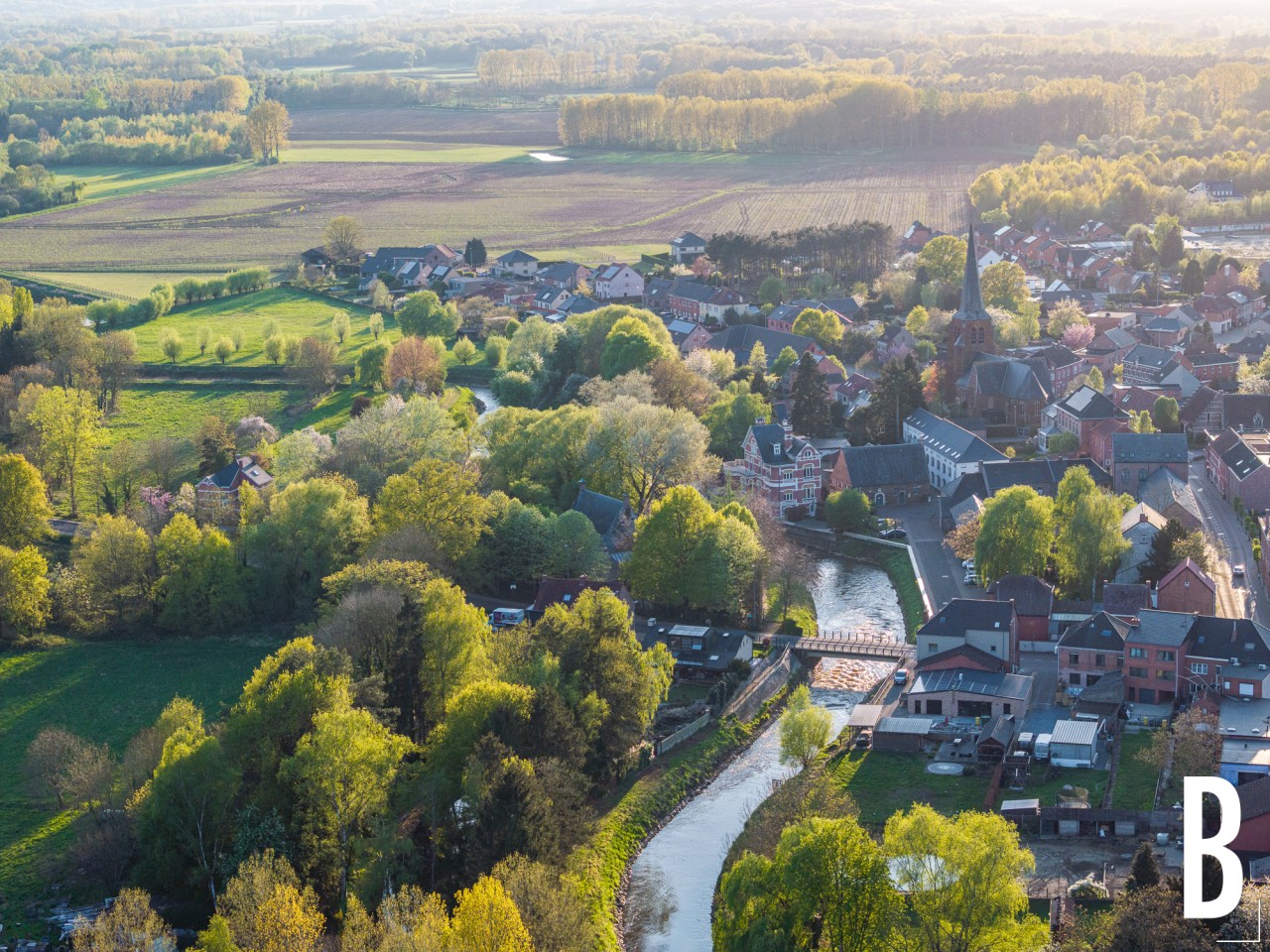 Zacht licht over de meanders en weilanden.