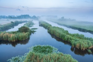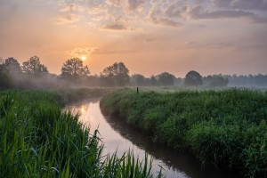 Knotwilgen omgeven door bloeiende boterbloemen en fluitenkruid in de weilanden rondom de Reytmeersen.