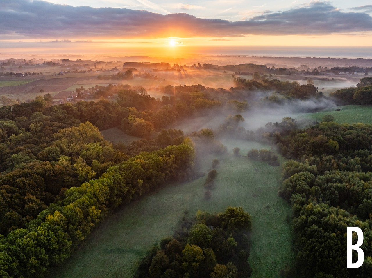 Drone-opname van het verstilde landschap in de vroege uren.