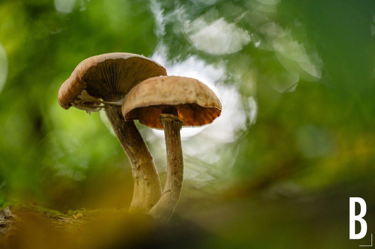Groepje honingzwammen (Armillaria) groeiend op dood hout.