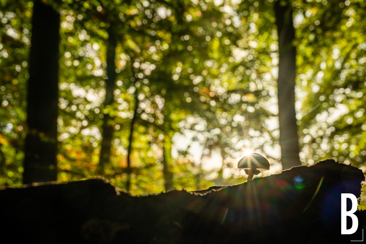Gedetailleerde HDR-opname van porseleinzwammen op een bemoste stam.