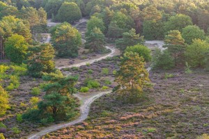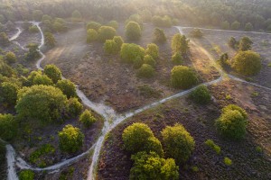 Een abstracte luchtfoto van de gelaagde zand- en asstructuren in het binnenland van IJsland. De patronen, gevormd door wind en water, creëren een intrigerend beeld.