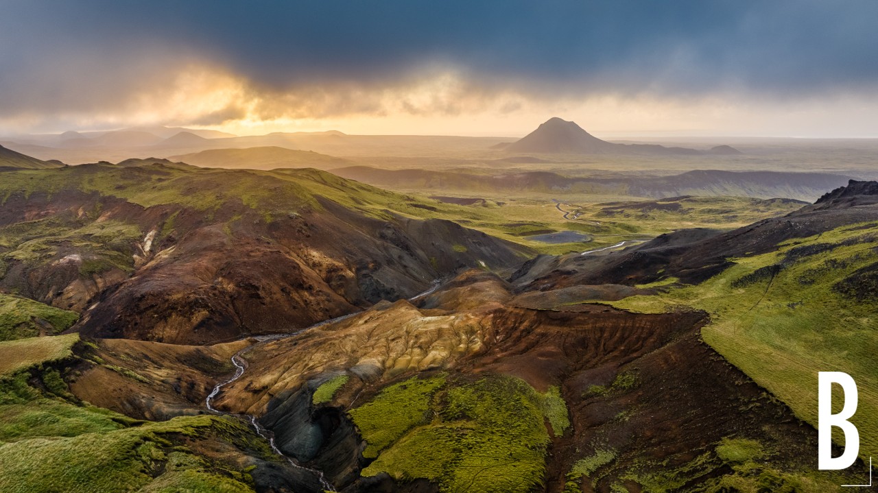 Kleurrijke vulkaanlandschappen in de vallei van Sog gezien vanuit de lucht op het Reykjanes Schiereiland.