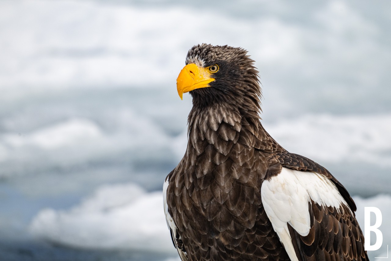 Steller's zeearend in de sneeuw