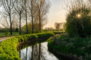 Zicht op het moerasgebied en de ontluikende natuur in de lente.