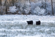 Galloway runderen in de besneeuwde Doode Bemde